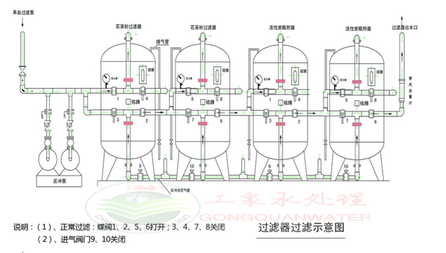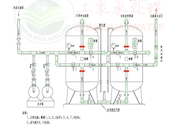 石英砂過(guò)濾器管路連接圖(串聯(lián))